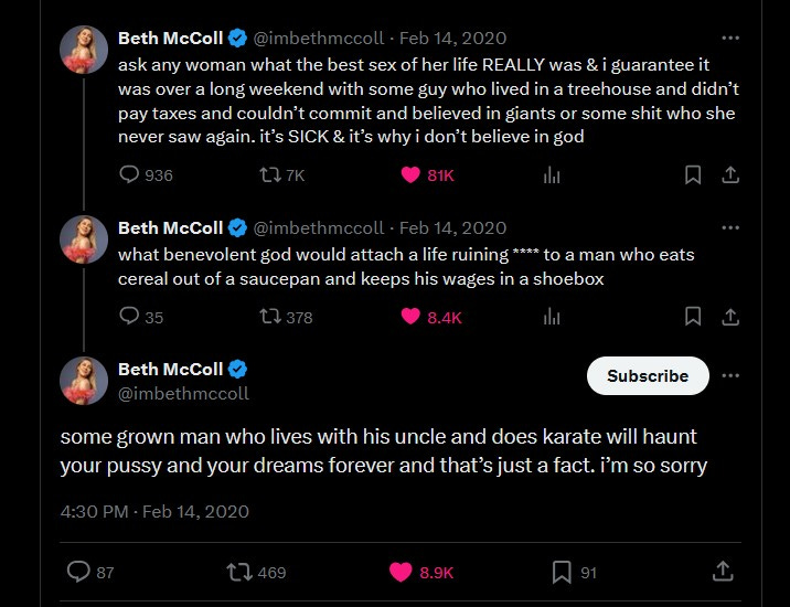 The underfucked man has a resentful pitch. Five paragraphs where two would do, the textual equivalent of someone grabbing your arm at a party. A dearth of intimacy transmuted into strange hostility and needless complexity.